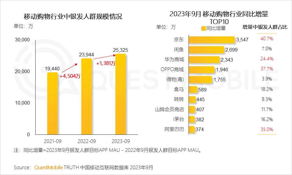 2、近一年以來在線上購物領(lǐng)域,銀發(fā)人群對行業(yè)的使用規(guī)模增量超千萬,并為京東、華為商城、OPPO商城以及阿里巴巴等購物平臺(tái)提供2成以上的增量占比。