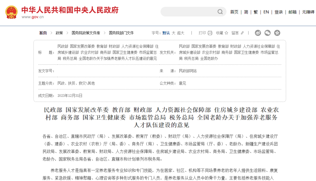 近日,民政部等12個部門制定出臺《關(guān)于加強養(yǎng)老服務(wù)人才隊伍建設(shè)的意見》(以下簡稱“意見”),這是我國首個關(guān)于養(yǎng)老服務(wù)人才隊伍建設(shè)的綜合性政策文件。