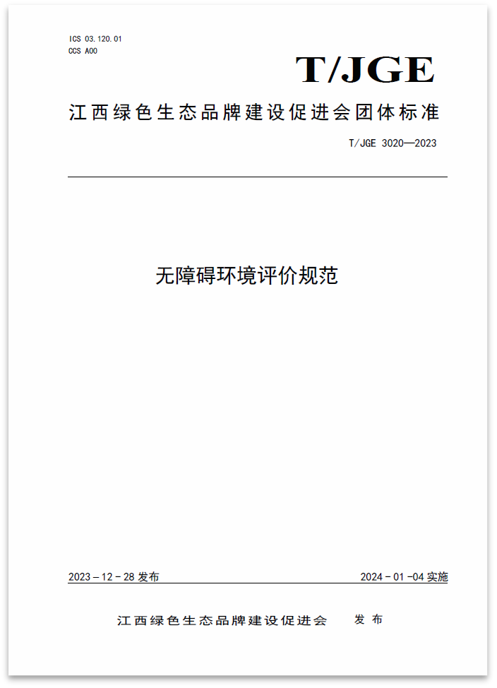 近期,《無障礙環(huán)境評價規(guī)范》(T/JGE 3020-2023)團體標(biāo)準(zhǔn)正式發(fā)布,該標(biāo)準(zhǔn)由江西省質(zhì)標(biāo)院聯(lián)合撫州市殘疾人聯(lián)合會、中國船級社質(zhì)量認(rèn)證有限公司等單位共同參與起草。