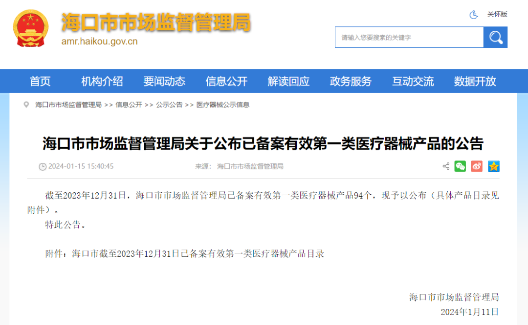 近日,??谑惺袌霰O(jiān)督管理局發(fā)布公告,公布已備案有效第一類醫(yī)療器械產(chǎn)品名單。截至2023年12月31日,海口市市場監(jiān)督管理局已備案有效第一類醫(yī)療器械產(chǎn)品94個。其中,海南殘疾人假肢矯形康復(fù)中心有限公司的足托、腰椎、膝關(guān)節(jié)、頸椎臂外展等固定器在名單內(nèi)。