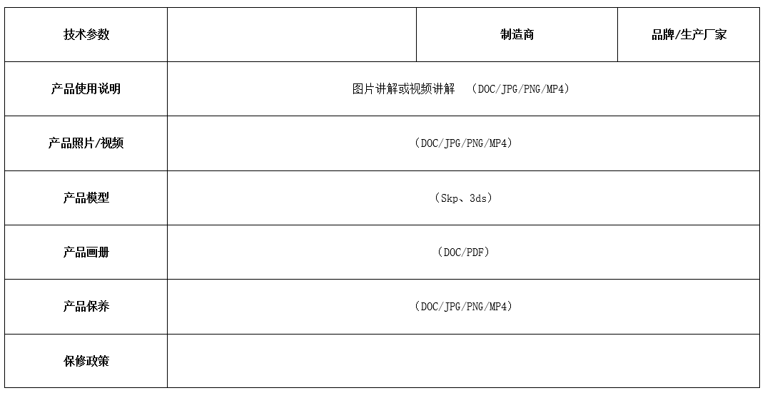輔具類別、輔具名稱、具體適用對象、產(chǎn)品特點、功能、品牌、制造商/生產(chǎn)廠家、產(chǎn)品使用說明(由廠家提供詳見WORD文檔)注:參考格式按附件2 |