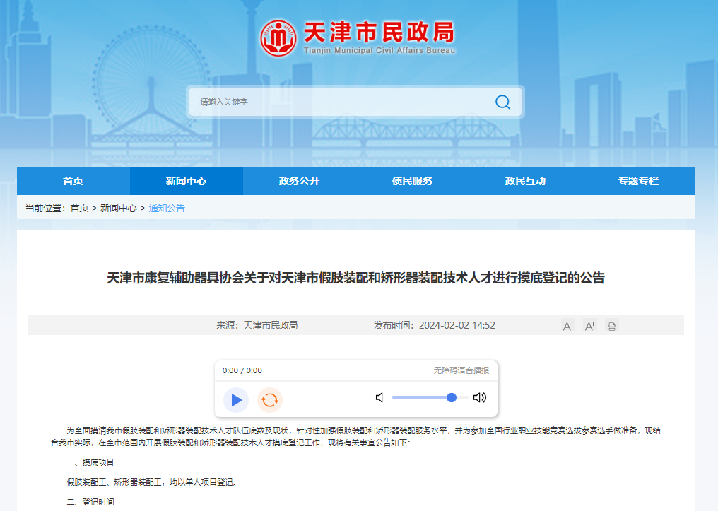 近日天津市康復(fù)輔助器具協(xié)會(huì)發(fā)布公告,在全市范圍內(nèi)開展假肢裝配和矯形器裝配技術(shù)人才摸底登記工作,為全面摸清我市假肢裝配和矯形器裝配技術(shù)人才隊(duì)伍底數(shù)及現(xiàn)狀,針對(duì)性加強(qiáng)假肢裝配和矯形器裝配服務(wù)水平,并為參加全國行業(yè)職業(yè)技能競賽選拔參賽選手做準(zhǔn)備。