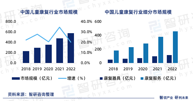 兒童康復(fù)市場,除了康復(fù)服務(wù),還涉及到各種康復(fù)設(shè)備和產(chǎn)品的銷售,包括輔助器具、特殊床位、運動訓(xùn)練器材、沙床、言語輔助設(shè)備等。2022年我國兒童康復(fù)器具市場規(guī)模約為117.1億元,兒童康復(fù)服務(wù)市場規(guī)模約為461.6億元。
