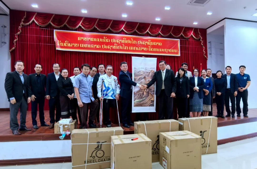 ▲亞洲合作資金-愛心助殘惠瀾湄·輔助器具服務能力提升項目在老撾的捐贈儀式。此次項目所捐助的產(chǎn)品都是根據(jù)當?shù)匦枨笳{(diào)研結(jié)果而采購的中國生產(chǎn)的高品質(zhì)輔助器具。