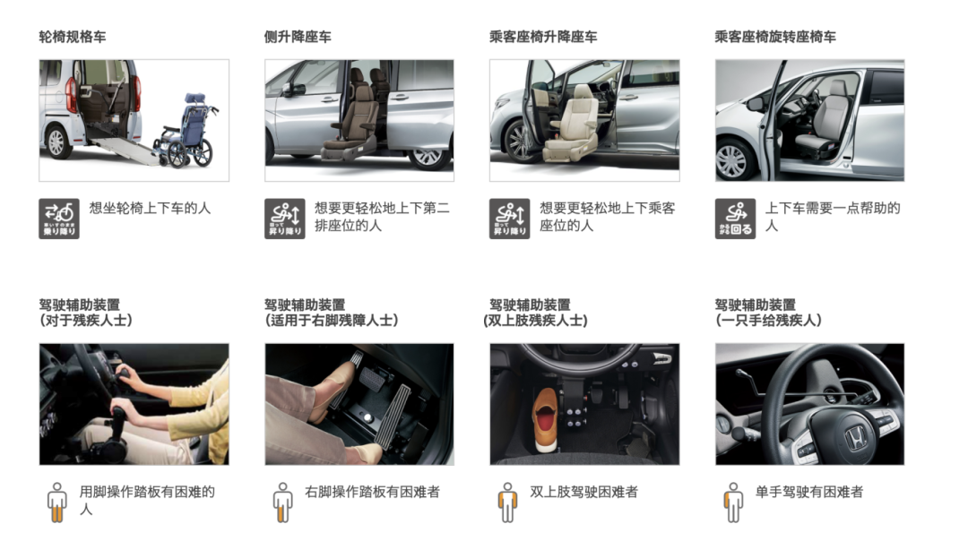 為了解決上下車難題,實(shí)現(xiàn)出行自由,豐田、本田、別克、傳祺、五菱、Kenguru等國內(nèi)外車企,紛紛推出各類福祉車。