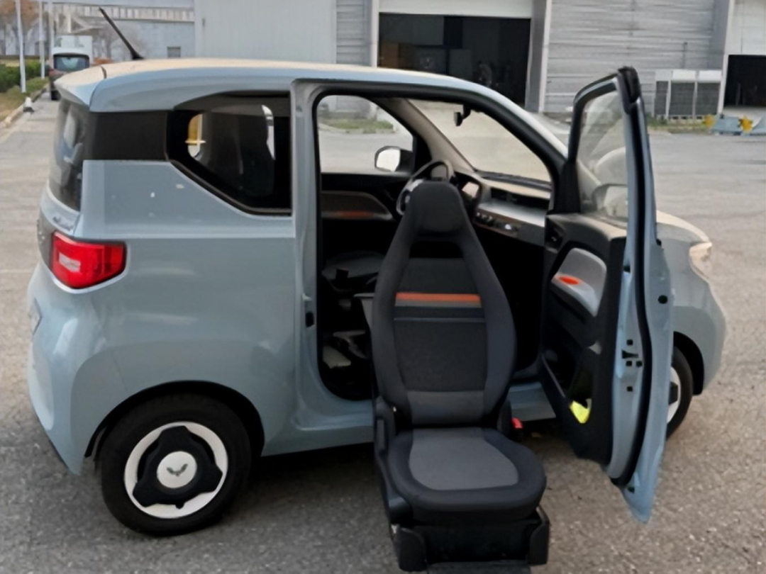 宏光MINIEV福祉車在副駕座椅上升級(jí)了旋轉(zhuǎn)功能,座椅底部設(shè)有供行動(dòng)不便的人群放腳的踏板。通過開啟旋轉(zhuǎn)功能,副駕座椅可從由正常姿態(tài)旋轉(zhuǎn)至車外,更方便行動(dòng)不便人士上下車。