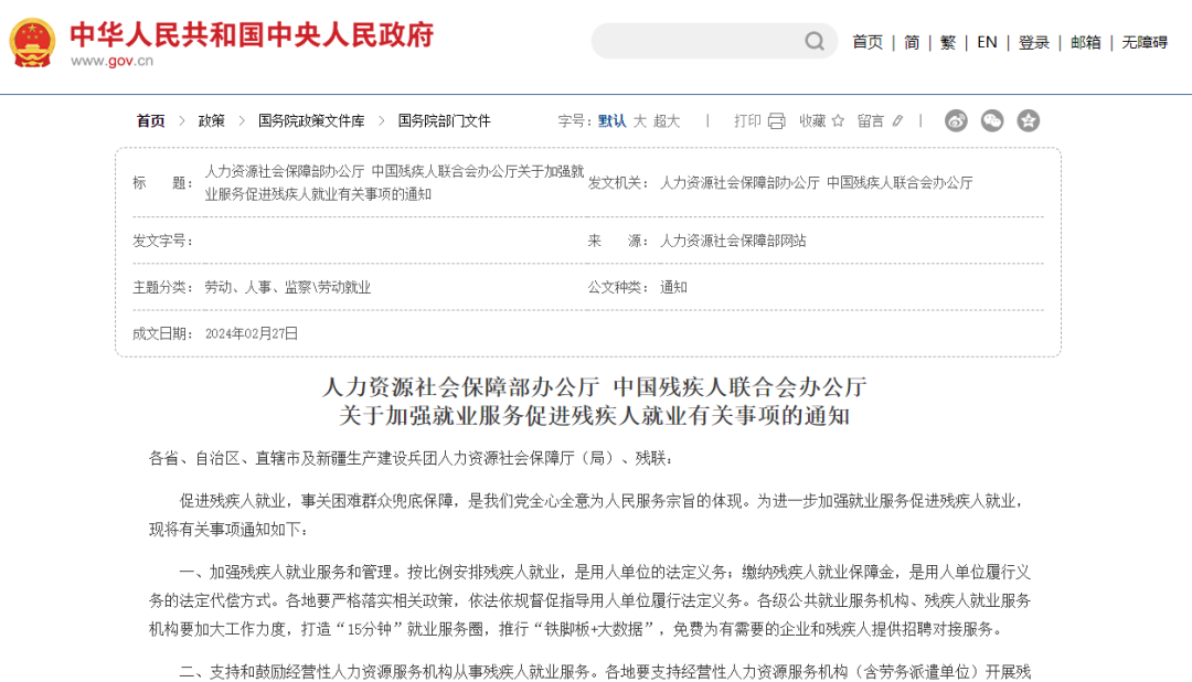 人社部、中國殘聯(lián)聯(lián)合印發(fā)通知