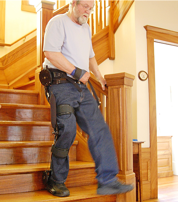 踝關節(jié)、膝關節(jié)和髖關節(jié)處設有五個自由度,系統(tǒng)主機控制關節(jié)電機學習正常步態(tài),帶動患者的患側(cè)腿做周期性節(jié)律運動。LiteStepper®前所未有的突破性創(chuàng)舉是將健側(cè)腿的步態(tài)數(shù)據(jù)復制為偏癱側(cè)腿的動作參考,由健側(cè)帶動患側(cè)進行雙側(cè)聯(lián)合步態(tài)訓練,以此形成“對稱性”交互步態(tài),成功地解決了康復訓練步態(tài)不對稱的難題。