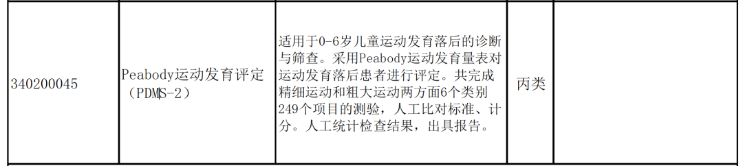 河南也將構(gòu)音障礙、職業(yè)能力評定、職業(yè)功能訓(xùn)練等放進了基本醫(yī)保的康復(fù)類目錄。同時將Peabody運動發(fā)育評定也納入了醫(yī)保。