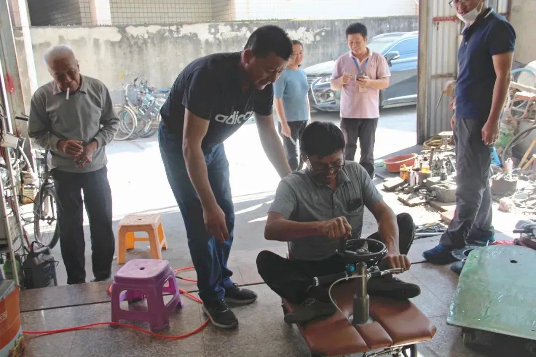 這種低位助力車(chē)的坐墊與地面的距離只有幾十厘米,設(shè)置手搖輪等傳動(dòng)裝置控制方向與移動(dòng)。適配該輔助器具后,林阿伯不必他人攙扶即可自行使用,且滿足了他的工作需要,方便維修。