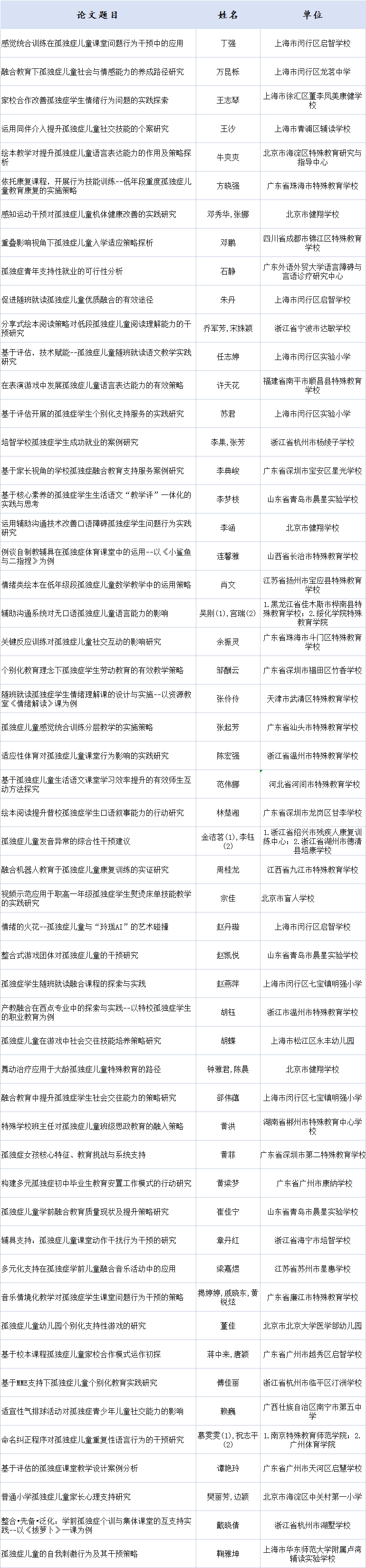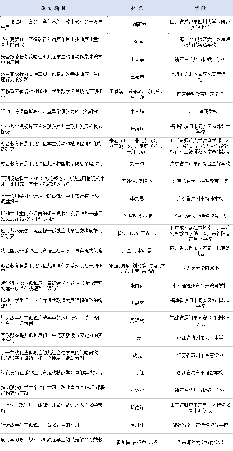 為貫徹落實(shí)黨的二十屆三中全會(huì)和全國(guó)教育大會(huì)精神,深入實(shí)施《“十四五”特殊教育發(fā)展提升行動(dòng)計(jì)劃》《孤獨(dú)癥兒童關(guān)愛促進(jìn)行動(dòng)實(shí)施方案(2024-2028年)》,大力開展孤獨(dú)癥兒童教育研究,積極推動(dòng)特殊教育教師專業(yè)能力提升,融合教育高質(zhì)量發(fā)展交流會(huì)暨第一屆孤獨(dú)癥兒童教育教學(xué)優(yōu)秀論文與課例征集結(jié)果發(fā)布儀式11月28日在北京國(guó)家會(huì)議中心舉行。
