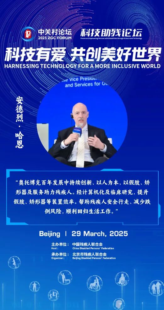 “奧托博克百年發(fā)展中持續(xù)創(chuàng)新、以人為本,以假肢、矯形器及服務助力殘疾人。經(jīng)計算機化及臨床研究,提升假肢、矯形器等裝置效率。幫助殘疾人安全行走、減少跌倒風險,順利回歸生活工作。”