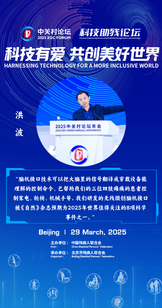 “腦機接口技術可以把大腦里的信號翻譯成穿戴設備能理解的控制命令,已幫助我們的三位四肢癱瘓的患者控制家電、輪椅、機械手等。我們研發(fā)的無線微創(chuàng)腦機接口被《自然》雜志預期為2025年世界值得關注的8項科學事件之一。”