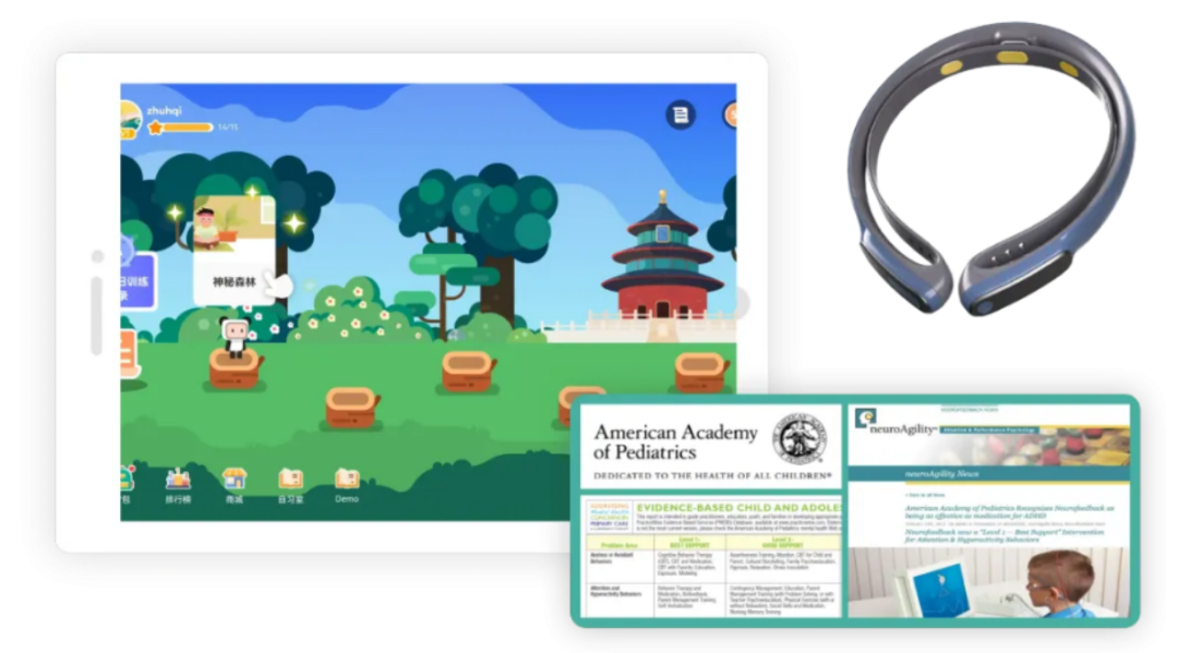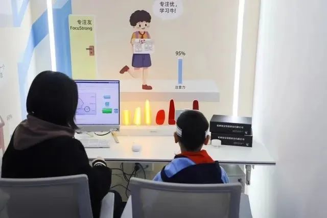 強(qiáng)腦科技旗下的專(zhuān)注欣腦機(jī)接口注意力訓(xùn)練系統(tǒng)則由便攜式腦電設(shè)備、訓(xùn)練軟件“專(zhuān)注欣”App、后臺(tái)管理系統(tǒng)三個(gè)部分組成,可幫助兒童有效改善和提升注意力、反應(yīng)力、自控力和記憶力。
