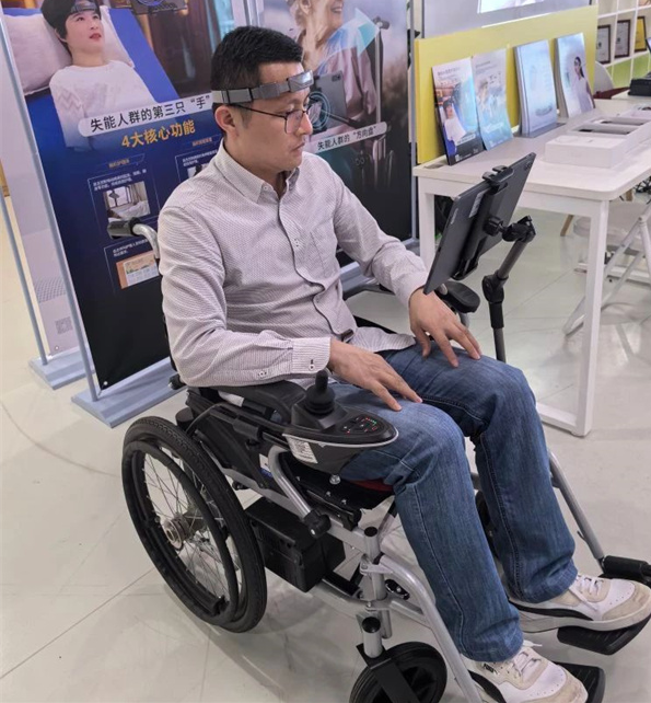 由華南腦控(廣東)智能科技有限公司研發(fā)的腦機(jī)AI電動(dòng)輪椅則可通過(guò)佩戴腦機(jī)AI頭環(huán),采集用戶(hù)腦電信號(hào)等多模態(tài)信號(hào),從而精準(zhǔn)識(shí)別用戶(hù)意圖,以實(shí)現(xiàn)對(duì)輪椅的控制。