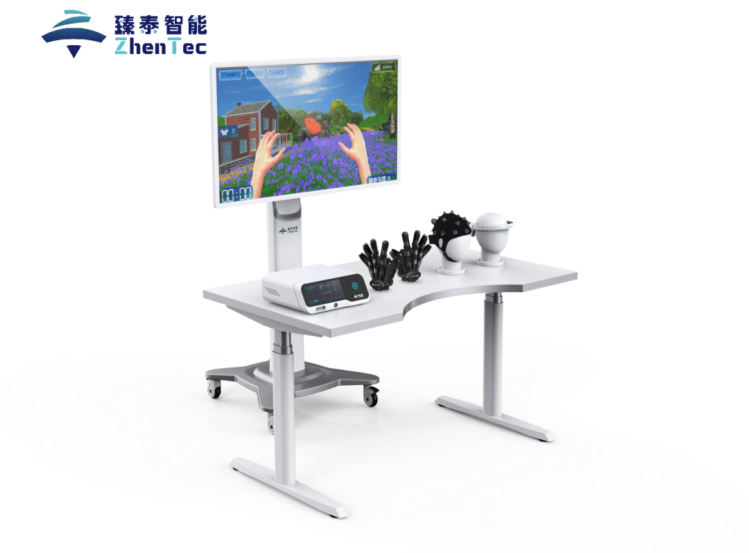 同樣屬于西安臻泰智能旗下的腦機(jī)接口手功能康復(fù)訓(xùn)練系統(tǒng)(BCI+OT)則是國(guó)內(nèi)首款視覺(jué)運(yùn)動(dòng)誘發(fā)的腦控手功能康復(fù)訓(xùn)練系統(tǒng)。該系統(tǒng)通過(guò)視覺(jué)運(yùn)動(dòng)誘發(fā)范式與手部鏡像動(dòng)作協(xié)同刺激,有效激活患者視覺(jué)和感覺(jué)運(yùn)動(dòng)皮層的多腦區(qū)響應(yīng),以此實(shí)現(xiàn)意念控制下的“中樞-外周-中樞”閉環(huán)主動(dòng)康復(fù)訓(xùn)練,可有效幫助患者進(jìn)行康復(fù)治療。