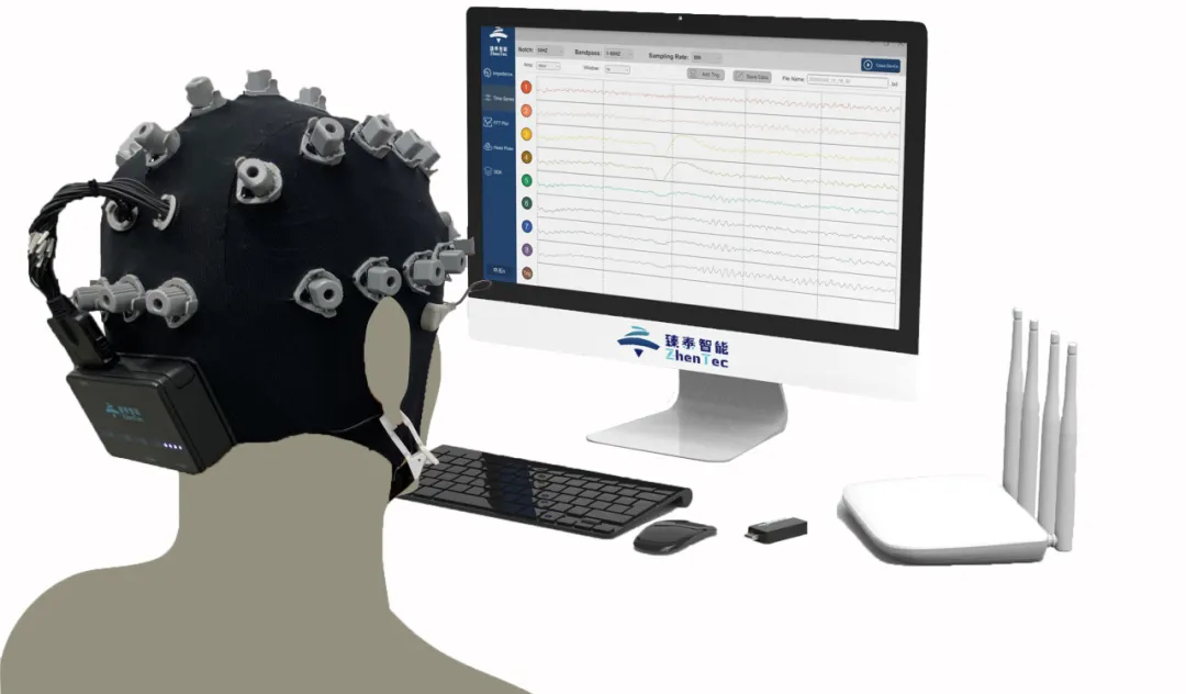 西安臻泰智能科技有限公司孵化的產(chǎn)品——無(wú)線(xiàn)多通道腦電采集分析系統(tǒng)是國(guó)內(nèi)首款無(wú)線(xiàn)全兼容腦電采集分析系統(tǒng)。其通過(guò)腦電電極采集人體uV級(jí)腦電信號(hào),進(jìn)行放大器處理、數(shù)模轉(zhuǎn)換后,通過(guò)5GHz的WIFI通信發(fā)送到電腦端,并以此控制外部機(jī)器人,形成腦-機(jī)接口系統(tǒng)。