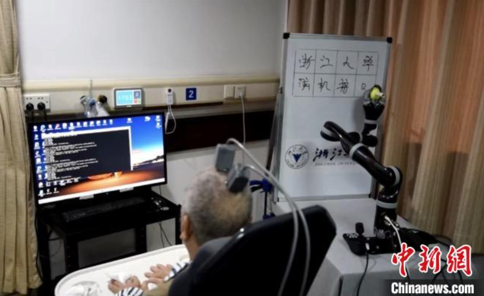 浙江大學(xué)腦機(jī)接口臨床轉(zhuǎn)化技術(shù)團(tuán)隊(duì)也通過(guò)腦機(jī)接口技術(shù)讓一位76歲高位截癱的老人實(shí)現(xiàn)了用意念寫(xiě)字,實(shí)現(xiàn)了侵入式腦機(jī)接口腦控機(jī)械臂書(shū)寫(xiě)漢字。