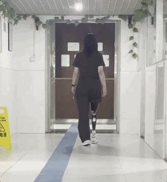 無(wú)獨(dú)有偶,26歲的林韻也在康復(fù)師的幫助下,通過與強(qiáng)腦科技智能仿生腿的訓(xùn)練磨合,重新找回了曾經(jīng)走路的感覺。同時(shí),林韻也慢慢可以穿戴著假肢完成走路、交替上下樓梯,跑步等動(dòng)作。林韻在不斷訓(xùn)練下,其走路也已和健全人無(wú)異。
