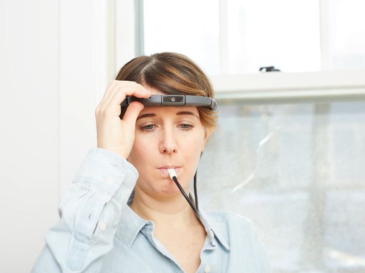 有著“電子棒棒糖”之稱的口腔電子視覺輔助設(shè)備BrainPort Vision Pro則可以用一個(gè)布滿電極的口含傳感器幫助視障人群導(dǎo)盲。用戶只需要戴上頭戴設(shè)備,并將口含傳感器放置在口中,內(nèi)部搭載的攝像機(jī)便會(huì)自動(dòng)捕捉周圍環(huán)境,并轉(zhuǎn)化為黑白灰三種不同色階的圖像,隨后轉(zhuǎn)化為電信號(hào)發(fā)送至口含傳感器中。通過三種圖像所反饋的不同強(qiáng)度的刺激,用戶便可將周圍信號(hào)翻譯為物體的形狀、位置等信息,從而指引用戶方向并進(jìn)行避障指引。