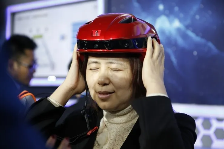 來自江蘇的郭萍在年輕時(shí)因患視網(wǎng)膜色素變異而導(dǎo)致雙眼失明。如今,她戴著智能助盲帽,在志愿者的陪同下,對(duì)智能助盲帽進(jìn)行了體驗(yàn)。郭萍表示,在穿戴上助盲帽時(shí),她的世界又“亮”了起來,周圍的環(huán)境也都轉(zhuǎn)變?yōu)榱苏Z音。