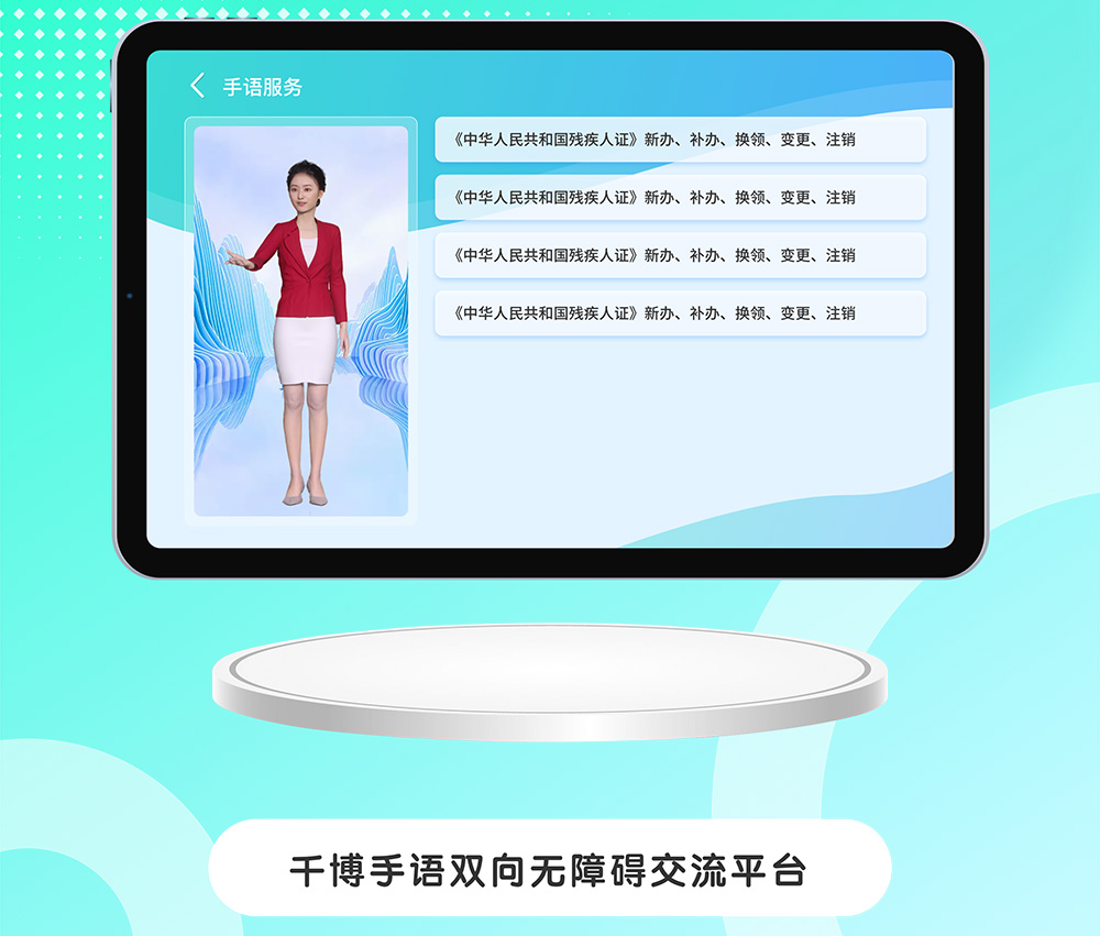 此外,千博信息旗下的千博AI手語也是目前全國唯一一套人工智能手語翻譯系統(tǒng),可應用在公共服務、特殊教育等各種領域,方便聽障人士的日常生活。