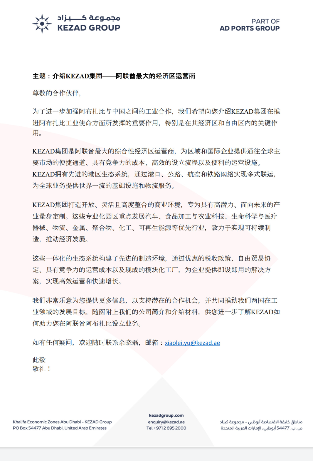 KEZAD集團是阿聯(lián)酋最大的綜合性經(jīng)濟區(qū)運營商,為區(qū)域和國際企業(yè)提供通往全球主要市場的便捷通道、具有競爭力的成本、高效的設立流程以及便利的運營設施。