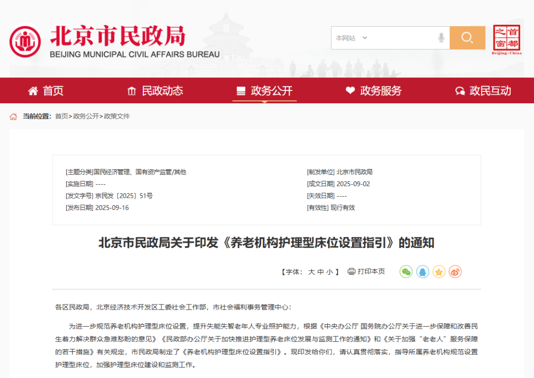 北京出臺(tái)養(yǎng)老機(jī)構(gòu)護(hù)理型床位設(shè)置指引
