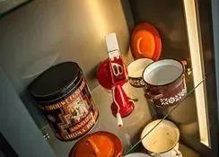 上圖是義工們用各種織物拼貼的一件陳設品,鍛煉老人的觸覺。下圖是養(yǎng)老院公共走廊里的一些康復訓練的設計。一些老物件的陳設,比如上圖的罐子,里面裝的東西類似于我們80年代的麥乳精,是老人們熟悉的物品。