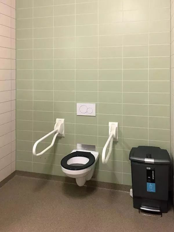 衛(wèi)生間一般根據(jù)建筑條件的不同,兩位老人共用一間,或一個單元共用3~4個衛(wèi)生間。 衛(wèi)生間的尺度都很大,除了適老化、無障礙的設計之外,還針對失智失能老人的特點進行設計,比如考慮輪椅進出以及助浴的需要,墻面地面色彩的對比也是精心設計的。
