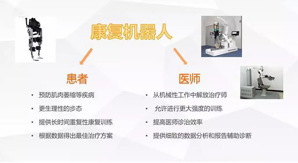康復(fù)機(jī)器人是輔助人體完成肢體動(dòng)作,實(shí)現(xiàn)助殘行走、康復(fù)治療、負(fù)重行走、減輕勞動(dòng)強(qiáng)度等功能的一種醫(yī)用機(jī)器人。在目前醫(yī)療機(jī)器人市場(chǎng)中,康復(fù)機(jī)器人占據(jù)相當(dāng)大的比例(約為40%)。