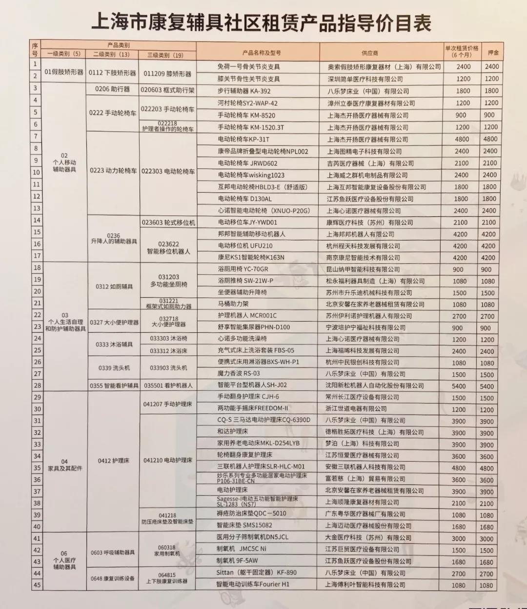試點(diǎn)期間,每件產(chǎn)品租期均為半年,價格從900-4000多元不等,老人還需繳納一定金額的押金,租賃期結(jié)束后歸還。本市戶籍60周歲至74周歲低保、低收入老年人,75周歲(含)以上老年人可申請租賃服務(wù)補(bǔ)貼,補(bǔ)貼金額為租賃價格的50%,每人每年補(bǔ)貼上限為3000元。(下方價目表僅供參考,仍在實(shí)施調(diào)整中)