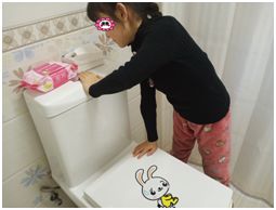 獨(dú)立行走或用助行器進(jìn)入廁所,到坐便器側(cè)面,一手扶坐便器,另一只手慢慢將褲子從臀部脫到大腿下,轉(zhuǎn)身坐到坐便器上,大小便結(jié)束后拿廁紙完成清潔,慢慢站起將褲子拉到臀部上及腰,轉(zhuǎn)到坐便器一邊夠到?jīng)_水裝置,小心走出廁所(如圖4-1、4-2)。