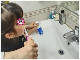 (2)刷牙訓(xùn)練:打開水龍頭給牙杯盛上水備用,一手握住牙膏盒體,一手打開蓋子,牙膏擠在牙刷上,將牙刷放入口中,上下交替刷牙(如圖3-3、3-4)。