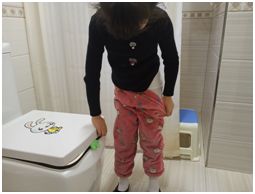 (6)脫褲子:脫褲子的步驟與穿褲子步驟相反進(jìn)行即可。