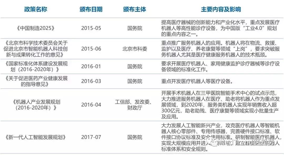 醫(yī)療機(jī)器人作為高科技、高性能的醫(yī)療器械,支持其研發(fā)生產(chǎn)也一直是各大政策文件關(guān)注的重點(diǎn)。