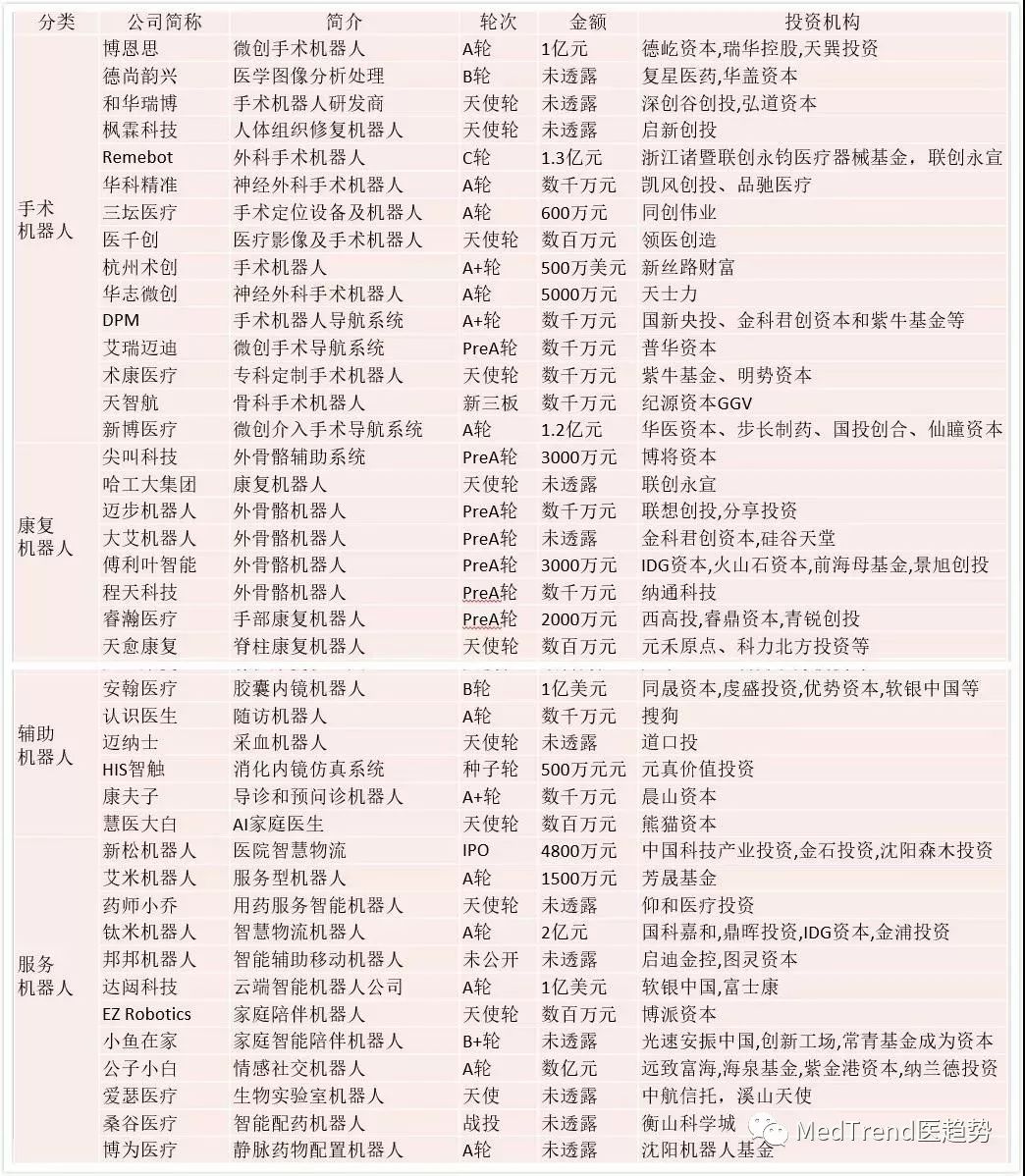 ▲部分醫(yī)療機(jī)器人公司/項(xiàng)目投融資情況