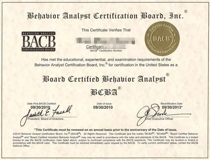 BCBA是認(rèn)證行為分析師的簡(jiǎn)稱(chēng),是從事應(yīng)用行為分析的專(zhuān)業(yè)人員,也是目前國(guó)際上自閉癥康復(fù)相關(guān)從業(yè)人員的資格認(rèn)證。