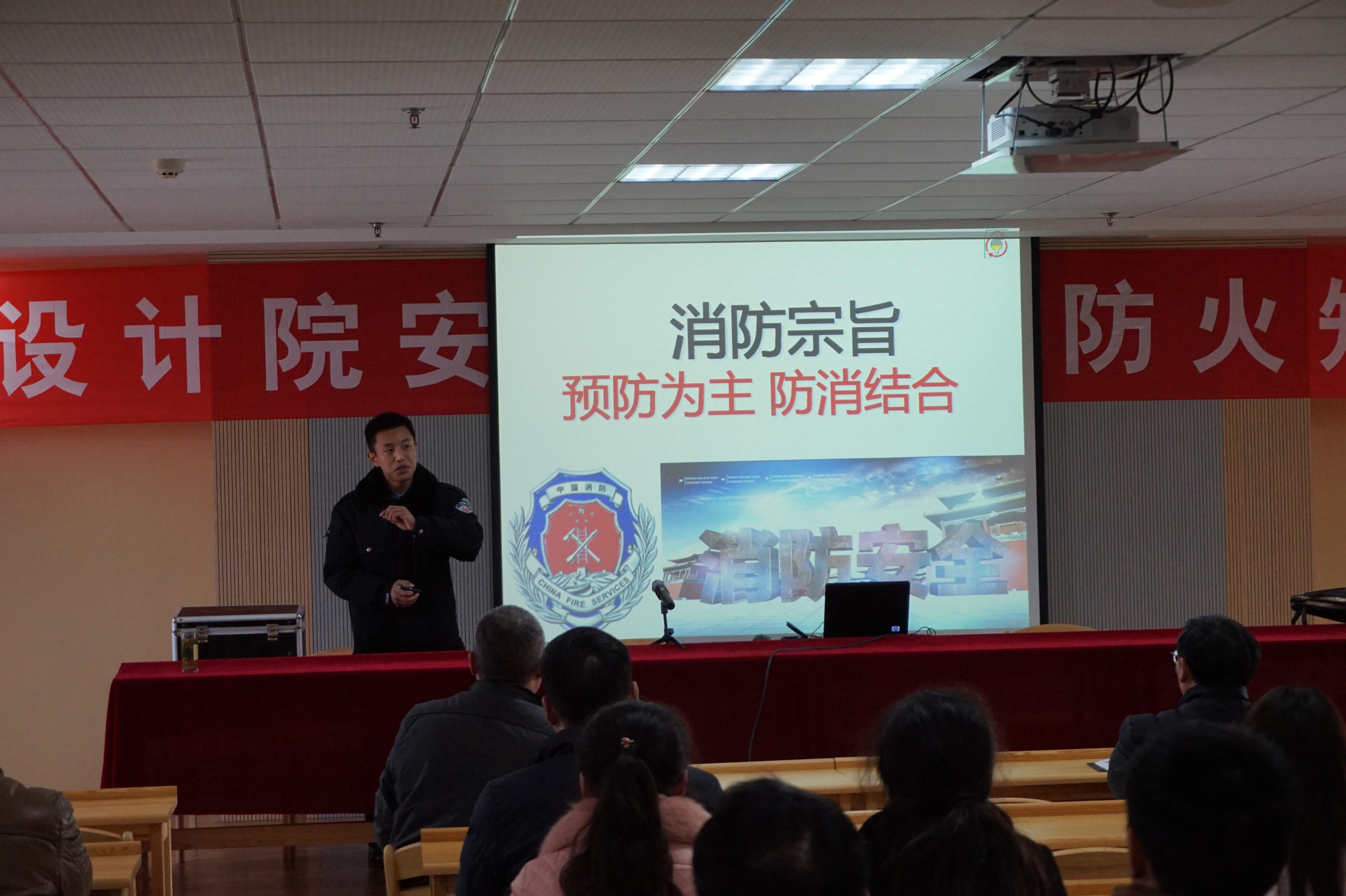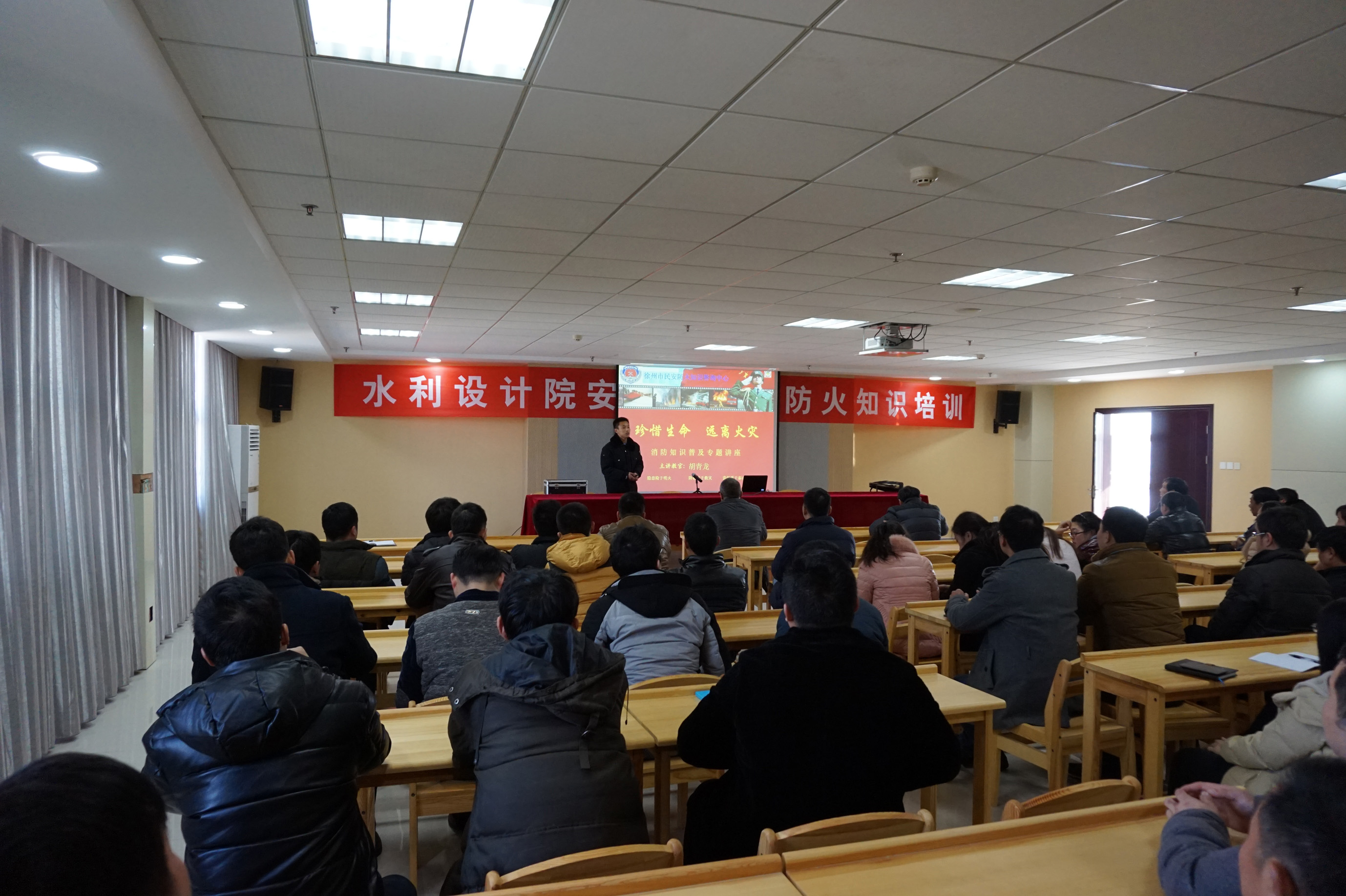 在臨近元旦、春節(jié)之際,為進一步吸取“昆山爆炸”事件教訓(xùn),我院于12月31日邀請徐州民安防火知識咨詢中心的專業(yè)人員對全院職工進行“火災(zāi)自防自救意識”培訓(xùn),市水利局科技安全處葛寶林主任也應(yīng)邀參加,通過培訓(xùn)進一步貫徹落實新消防法,提升職工消防安全素質(zhì),增強防御火災(zāi)的能力,達到“人人收到宣傳教育,人人增強防范意識,人人掌握基本常識”的目的。