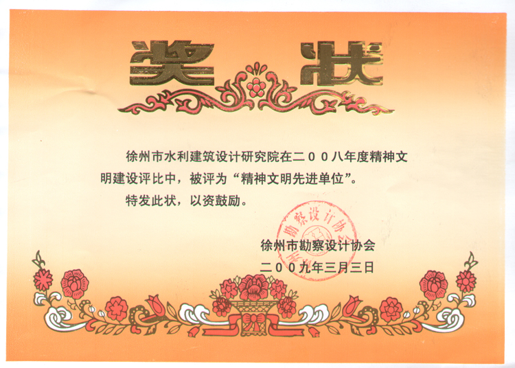 2008年度精神文明先進(jìn)單位(市勘協(xié)09.3.3)