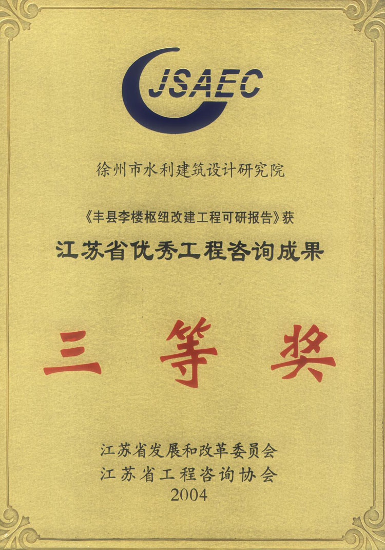 《豐縣李樓樞紐改建工程可研》省咨詢成果獎(2004)