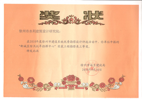 《新城區(qū)防汛抗旱指揮中心》市建設(shè)系統(tǒng)優(yōu)秀工程勘察三等獎(jiǎng)